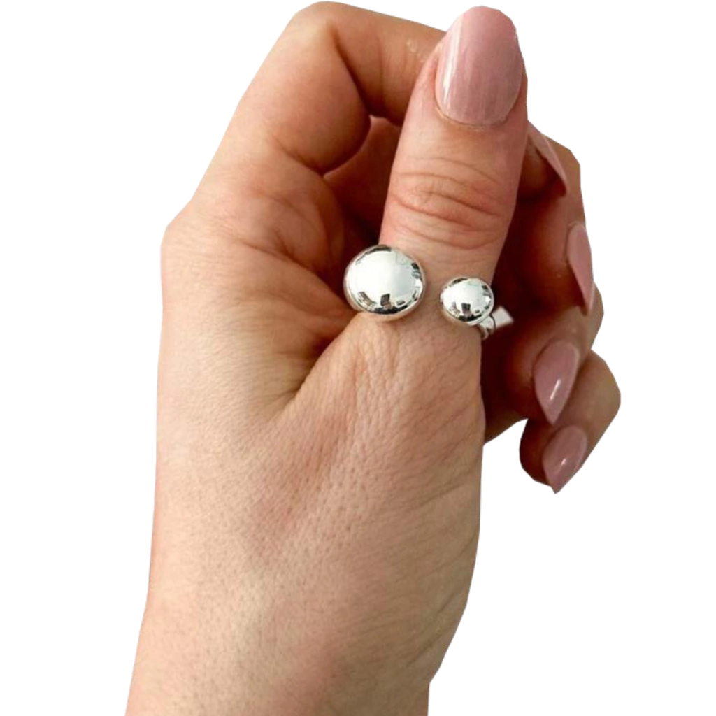 Aporta un toque de distinción a tu colección de joyas con nuestro elegante Anillo Abierto Doble Esferas. Este diseño contemporáneo es un símbolo de equilibrio y armonía, ideal para quienes valoran la belleza en lo simple.
